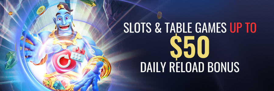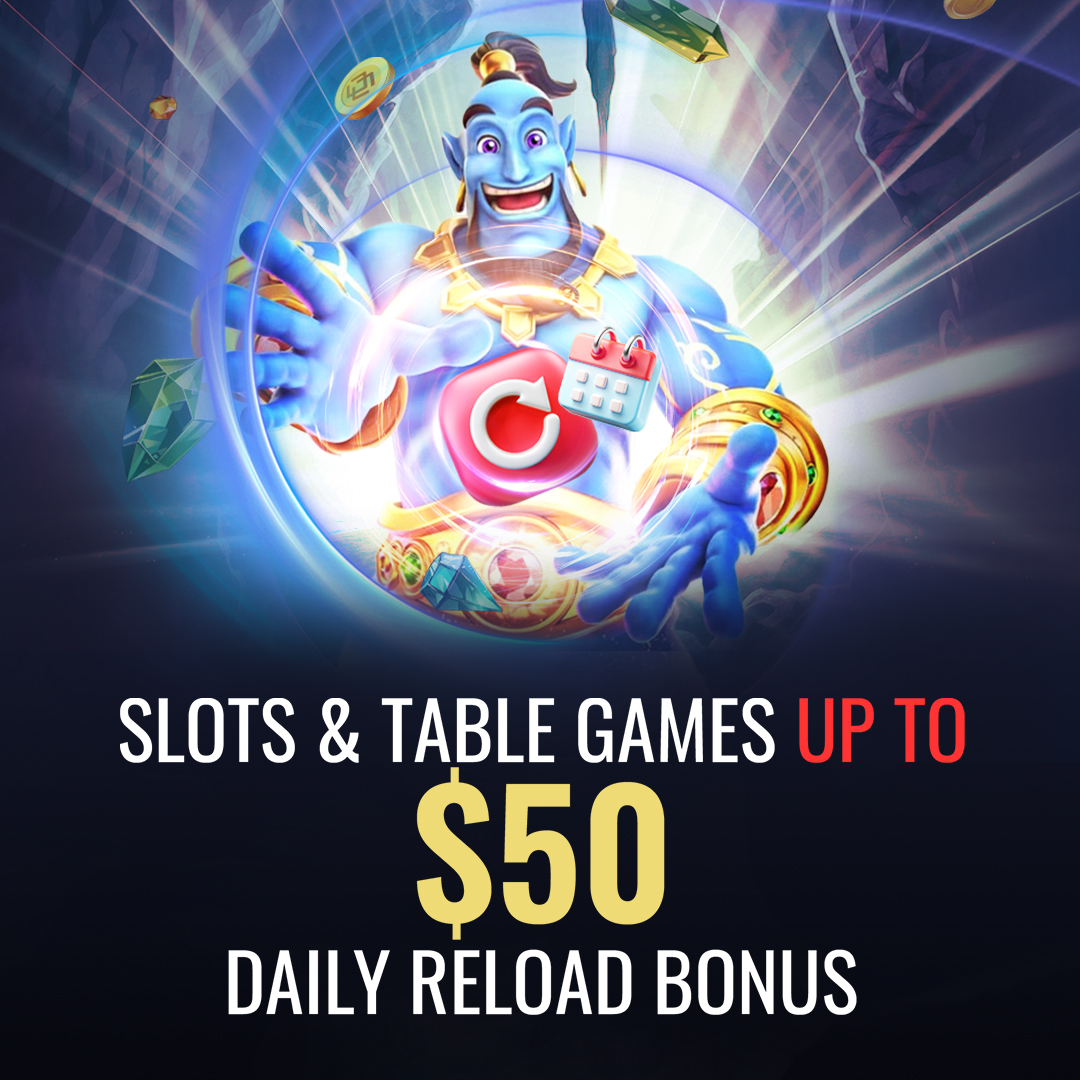 Slots & Table Games 25% Daily Reload Bonus 50 USD